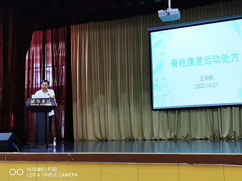 本网讯 9月21日,教职工瑜伽协会邀请体育学院运动康复专家王华刚副教授在闻韶楼报告厅举办以“脊柱康复运动处方”为主题的健康知识讲座。260余名教职工及学生聆听讲座。