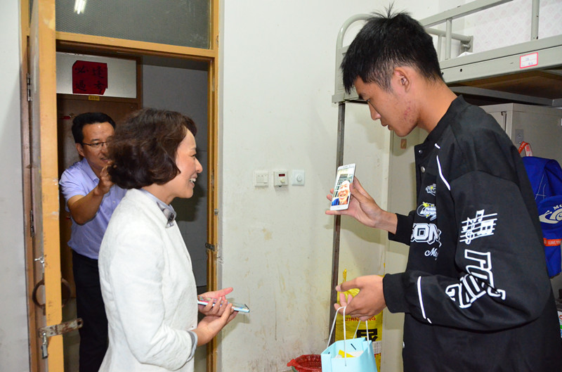 下午,徐梅又来到弘德社区学生公寓走访留校学生,并慰问假期坚守一线的工作人员。
