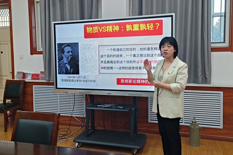 本网讯 理想指引人生航向,信念承载青春梦想。为深入学习习近平新时代中国特色社会主义思想,教育引导2023级新生树立崇高理想信念,厚植爱国爱校情怀,赓续历史文脉,不负时代使命。近日,学生工作处召开2023年新生入学教育理想信念师生宣讲团动员会,围绕宣讲工作开展集中备课研讨。师生宣讲团成员参加会议。马克思主义学院副教授高海杰老师作主题分享。