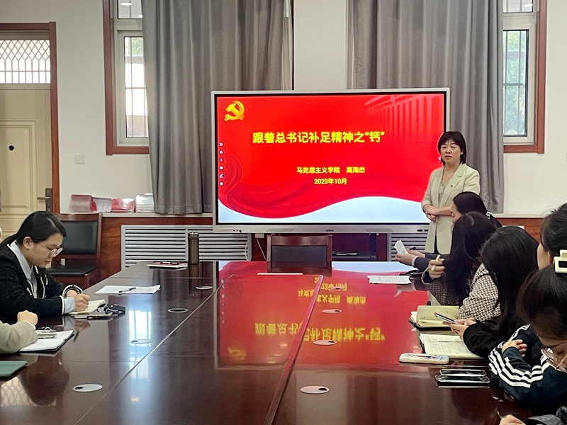 高海杰老师作了题为“跟着总书记补足精神之‘钙’”的专题讲座,讲座内容从“功能论:回答‘为什么的问题’”“元素论:回答‘是什么’的问题”“方法论:回答‘怎么做’的问题”三个方面展开。她强调,加强理想信念教育意义重大,宣讲要把握大学生的特点,遵循大学生的成长规律,宣讲内容要精心设计,要将文本和学术话语精心打磨,转换为当代大学生喜闻乐见的“青言青语”。