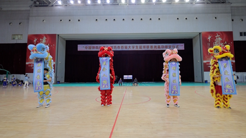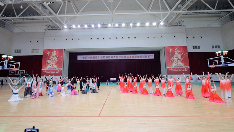 仪式前,我校男篮和山东科技职业学院男篮进行了一场精彩的表演赛,我校体育学院和音乐学院学生贡献了暖场表演。