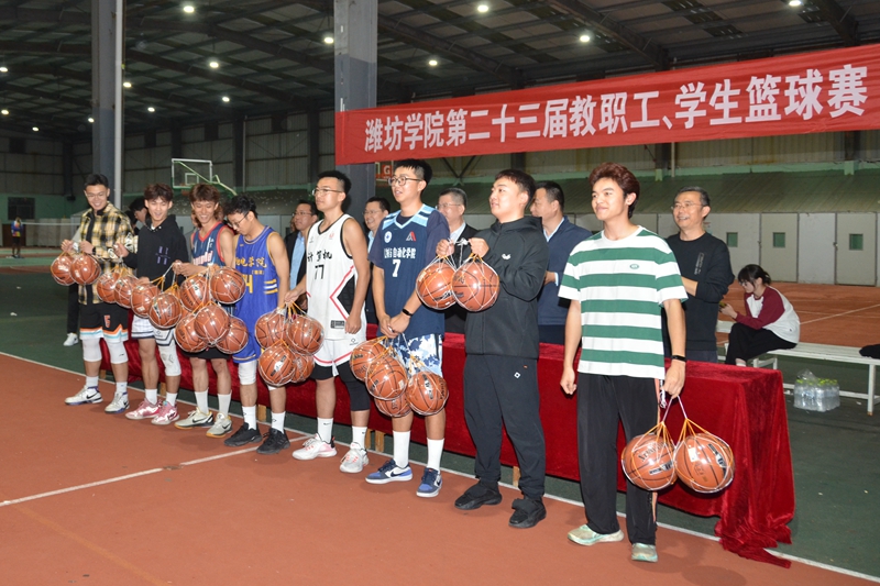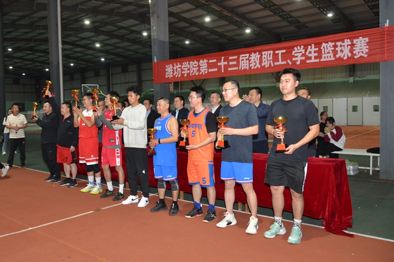 本网讯 10月31日,由校体委、工会、学生工作处主办,体育学院承办的潍坊学院第二十三届教职工学生篮球赛在学校风雨球场落下帷幕。党委委员、副校长任立春出席仪式并为获奖代表队颁奖。