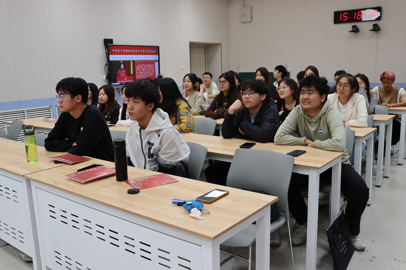 本网讯 11月3日,数学与信息科学学院党总支书记周莹到联系班级2022级应用统计学1班,宣讲学校第四次党员代表大会精神。