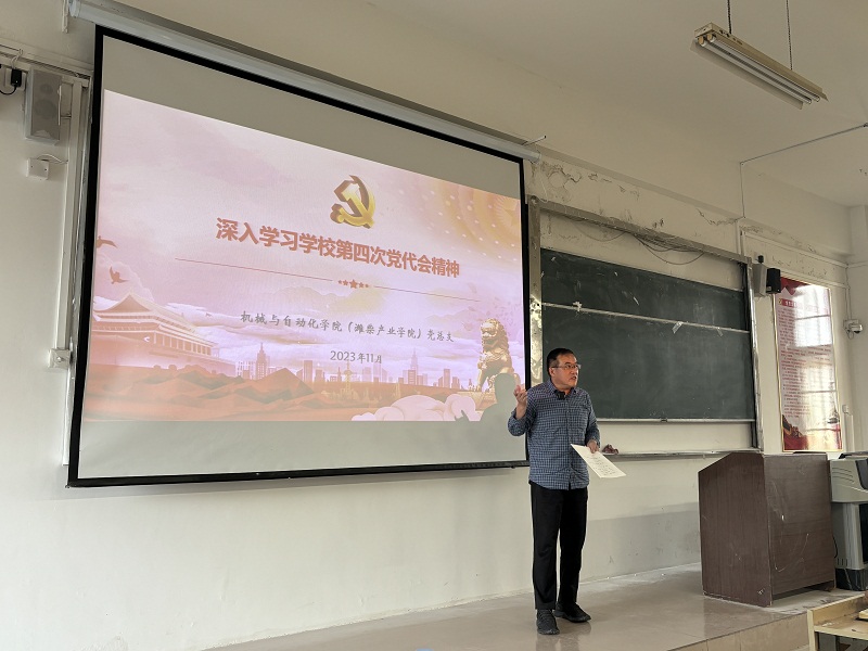 本网讯 为深入学习贯彻学校第四次党员代表大会精神,近日,机械与自动化学院(潍柴产业学院)在致远楼6501召开会议。会议由学院党总支书记杨守忠主持,全体教职员工参加。