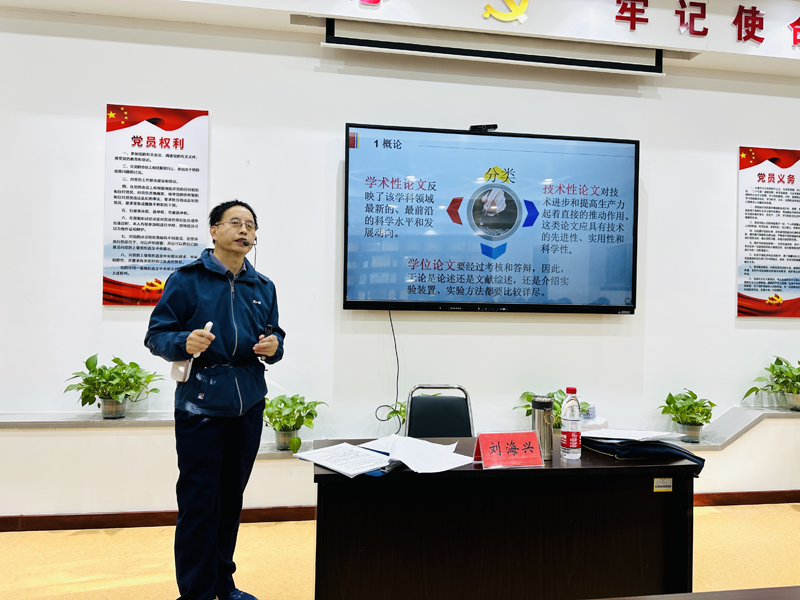 刘海兴教授从科技论文写作的概念和定义入手,详细讲解了科技论文的具体要求、构成部分。随后,刘教授为同学们详细阐述了关于科技论文选题、撰写注意事项等问题。刘教授指出,科技论文的撰写必须要做到严谨、真实、规范,实验的过程和论文的观点必须要经得起推敲和检验。就像做人做事一样,一定要脚踏实地,努力精益求精。同时,刘教授还通过举例论证的方式讲述了如何写好一篇高质量的科技论文,勉励学院师生要坚持用严谨的态度做好科学研究。