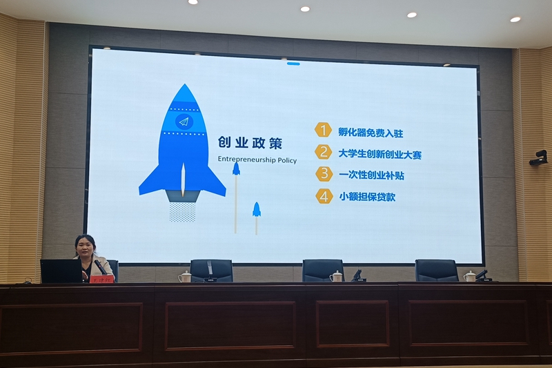 会议伊始,王建红组织同学们观看古往今来关于潍坊市名人志士、市情市貌的宣传片——“我的潍坊”,彰显了我市在时代见证下用奋斗置换成就的辉煌足迹,同时,也再次展现了我市对复合型人才的认可和需求。随后,王建红对我市最新就业、创业政策作出详细解读。王科长从“就业见习补贴”“求职创业补贴”“青年人才生活补助”和“青年人才购房补贴”四个方面对相关政策进行了详细讲解。
