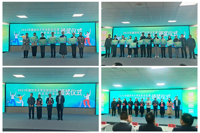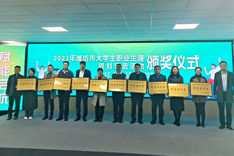 本网讯 11月19日,由潍坊市人力资源和社会保障局主办,潍坊市公共就业和人才服务中心和潍坊创业大学承办的“赋能启航 潍你而来”潍坊市大学生职业生涯规划总评、终评活动在潍城人力资源服务产业园顺利举行。经过初赛、复赛、总评、终评四个环节的激烈角逐,我校参赛选手发挥出色,斩获金奖4项(共5项)、银奖4项(共10项)、铜奖14项(共20项)。我校教师教育学院选手许敏被评为“潍坊市职业生涯规划之星”(全市唯一),田昌、杨颂等6位指导老师获评优秀职业导师奖,我校获评优秀组织奖。