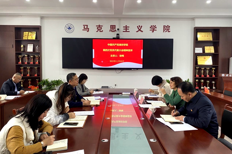 随后,徐梅宣讲学校第四次党员代表大会精神,她用“两全一高一远”总结回顾了党代会的基本情况,并从“为什么学、明白学什么、确保学得好”三个方面,对报告内容进行系统阐释。为推动党代会各项工作任务落地落实,她要求,要继续深入学,原原本本学,把学习党代会精神与学院发展结合起来,最大程度凝聚发展合力。要拓展宣传广度,积极利用学院优势宣讲党代会精神,推动党代会精神入脑入心。要持续推进马克思主义理论学科建设,系统优化思政课教学体系,增强贯彻党代会精神的能力。要充分发挥社会服务功能,拓展马克思主义理论宣传阵地,发挥调研咨询优势。要加强学术交流,切实提升教师教科研能力。