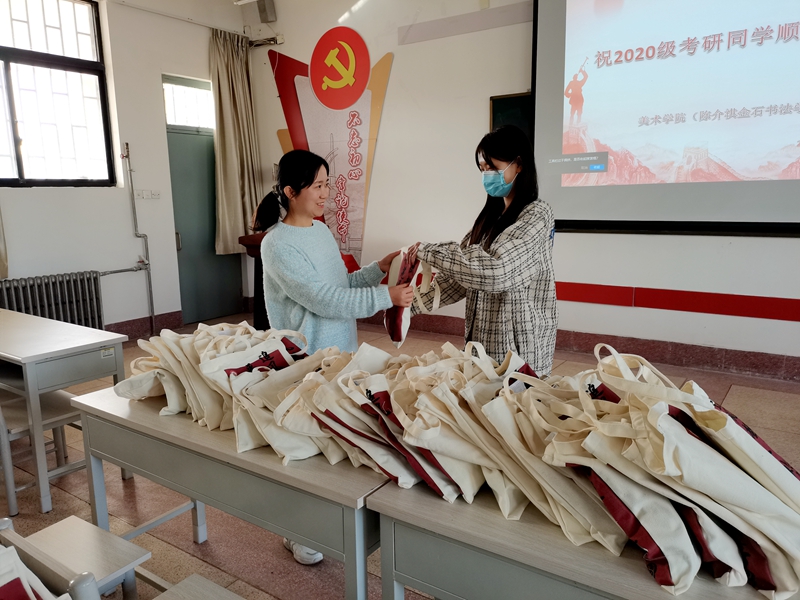 美术学院(陈介祺金石书法学院)高度重视学生就业工作,持续提供暖心服务,提高学生考研深造率,助力实现高质量就业。本次发放加油包活动,深受同学们好评,学生收到“加油包”后一致表示很感动,一定会努力备战,考出优异成绩。