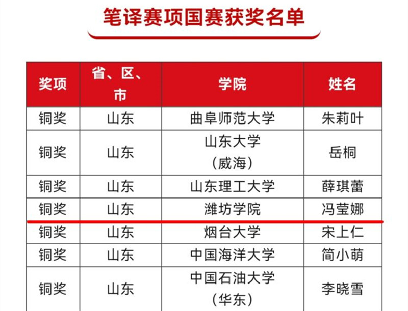 近年来,外国语学院不断深化“以赛促学,以赛促教”教学理念,旨在培养语言综合运用能力强、人文知识丰富、跨文化交际能力强的应用型外语人才。今后,学院将继续以业内顶级大赛为抓手,强化学生专业基本功,提升其综合素养和实战能力,为社会输送更多高质量外语人才。