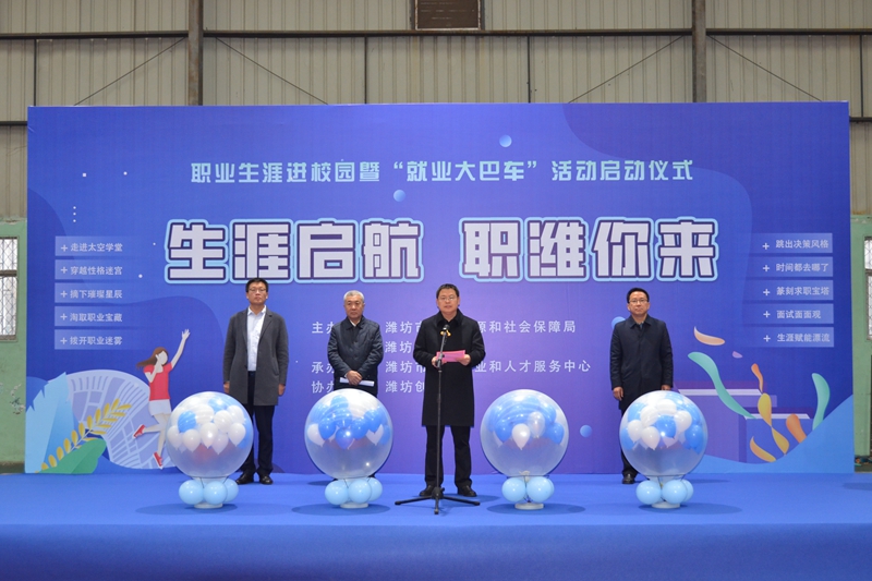 孙友欣介绍了此次活动的具体情况,他表示,本次职业生涯服务进校园暨就业大巴车企业体验活动,可以让更多的企业文化走进校园,激励更多的优秀人才圆梦潍坊,将就业优先战略和人才强市战略落到实处。