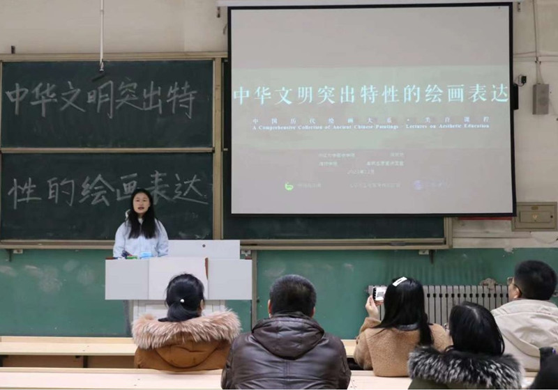 鸢明志愿宣讲团成员聚焦中国古代绘画,择取历代绘画中具有代表性的主题、题材,从艺术呈现的层面,用生动的语言为大家讲述了中华文明的“连续性”“创新性”“统一性”“包容性”“和平性”等五个突出特性,与现场师生进行问答互动。