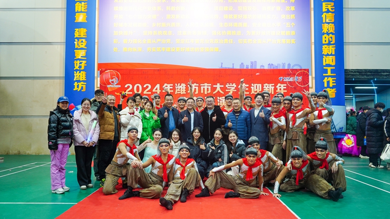 本网讯 12月27日,2024年潍坊市大学生迎新年文艺汇演在潍坊市广播电视台演播厅成功举办,校党委副书记、校长来逢波应邀出席,与潍坊市领导、驻潍高校领导和大学生代表观看文艺汇演。