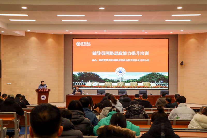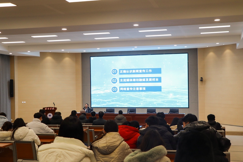本网讯 为全面落实立德树人根本任务,提升我校学工队伍的网络思政能力,12月29日,经济管理学院和网络思想政治教育模块化培训小组在明正楼109报告厅举办了辅导员网络思政能力提升培训讲座。本次讲座特邀请潍坊融媒·潍坊晚报总编辑孙瑞永做以“做好网络宣传,实现正能量澎湃大流量”为主题的专题讲座。学生工作处副处长王秀慧、各二级学院分管学生负责人及全体辅导员参加活动。
