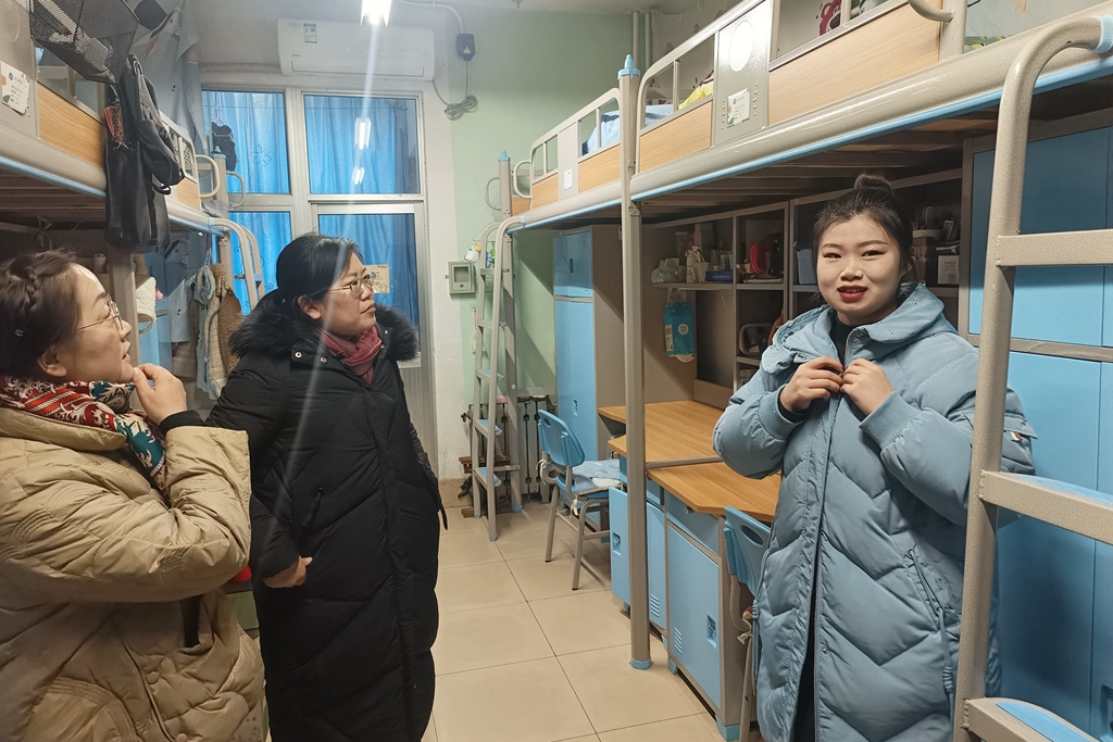走访期间,老师们还就学生的返乡时间、出行方式以及假期安排进行一一询问。王秀慧建议同学们要合理规划自己的假期生活,要结合专业开展有意义的社会实践活动,对本学期的学习工作和生活情况进行总结,以更加饱满的状态迎接新的一年。