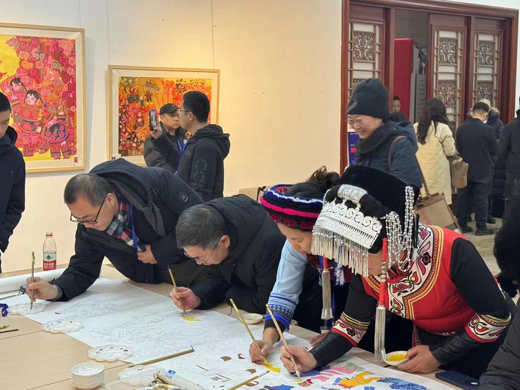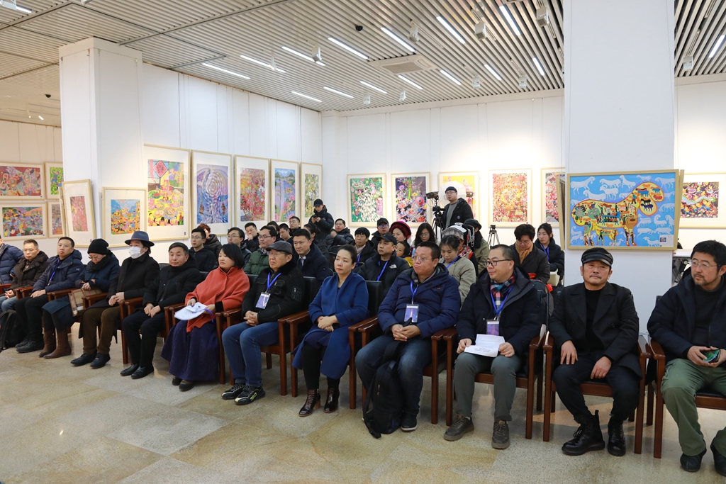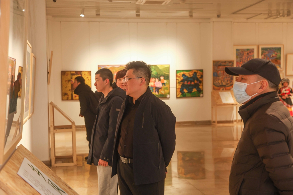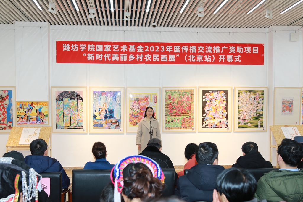 本网讯 日前,由我校主办,宣传部、科研处、美术学院,中央民族大学美术学院、《中国民族美术》编辑部合作承办的国家艺术基金2023年度传播交流推广资助项目“新时代美丽乡村农民画展”(北京站)在中央民族大学美术馆举行。中央民族大学美术学院党委副书记胡文会主持仪式,相关专家、学者出席开幕式,我校美术学院(陈介祺金石书法学院)相关负责同志参加活动。