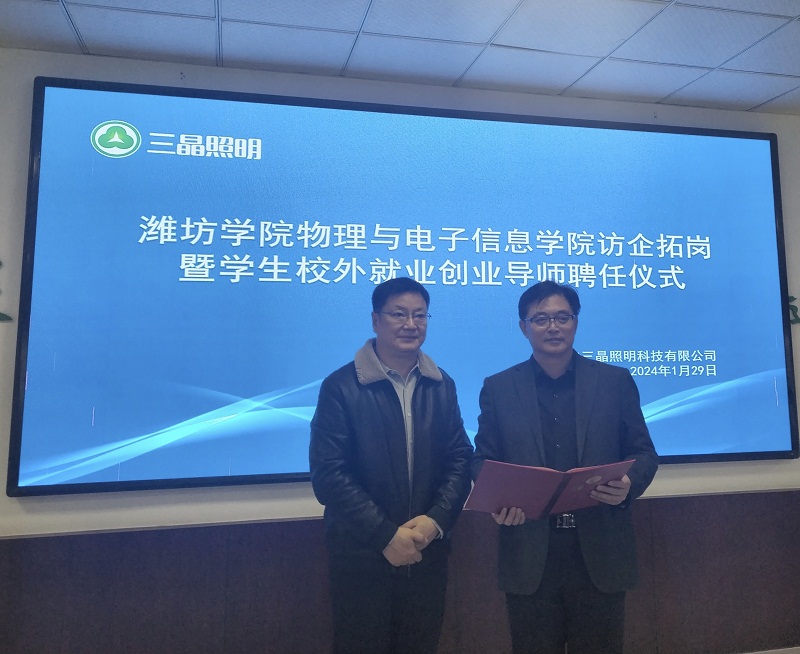 本网讯 1月29日,物理与电子信息学院党委副书记于尔河带队前往山东三晶照明科技有限公司开展访企拓岗交流活动,调研行业发展趋势、了解企业人才需求、洽谈校企促就业合作。学院党员博士服务团成员张彭、高娟娟、樊心民与就业指导专员金波昌参加活动。