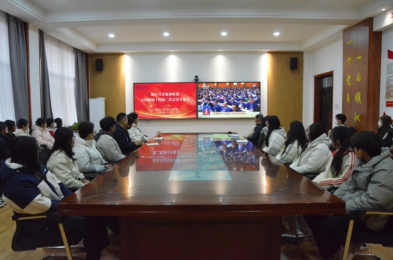 本网讯 3月4日、5日,备受瞩目的全国政协十四届二次会议和十四届全国人大二次会议在北京开幕。化学化工与环境工程学院组织领导班子成员、科级干部、各党支部书记、全体辅导员和部分学生骨干在8213会议室集中收看了两会开幕直播,其他教师和各班级团支部以不同形式收听收看。师生们收看两会盛况,聆听政协、政府工作报告,感受党和国家过去一年取得的各项成就,备受鼓舞、反响热烈。