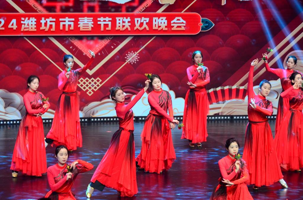接到演出任务后,我校音乐与舞蹈学院高度重视,积极组织师生参与排练。此次活动,共有91名师生参演了《欢乐幸福年》《水上花》《雨涧春行》《红玫瑰》《张灯结彩》《春风十万里》6个舞蹈节目。同学们冒着严寒,克服各种困难,以最高标准和最佳状态出色完成了两场晚会的节目排练与演出,充分展示了潍院学子的精神风貌和责任担当,更好引导了潍院学子自觉做潍坊城市的建设者、潍坊发展的推动者和潍坊文化的传承者。