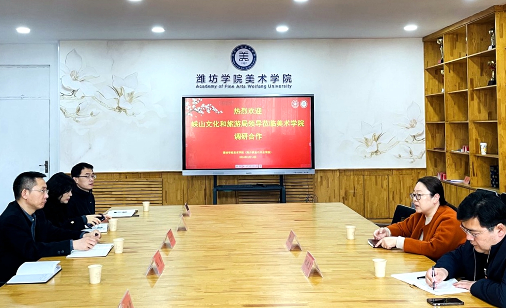 本网讯 3月14日,峡山文化旅游局一行到我校美术学院进行回访交流活动。双方围绕前期合作项目,进一步深化文化艺术交流、挖掘本地旅游资源与文创作品的融合发展等内容展开了深入探讨。美术学院班子成员和相关专业教师参加了座谈交流。