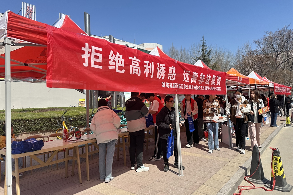 此外,大学生安全委员会联合潍坊高新区金融中心组织“春风送法-防范非法集资普法”宣传活动。采取现场讲解诈骗案例、互动解答等方式,有效提升了在校学生对金融违法犯罪活动的防范意识和识别能力,受到了学生们的一致好评。