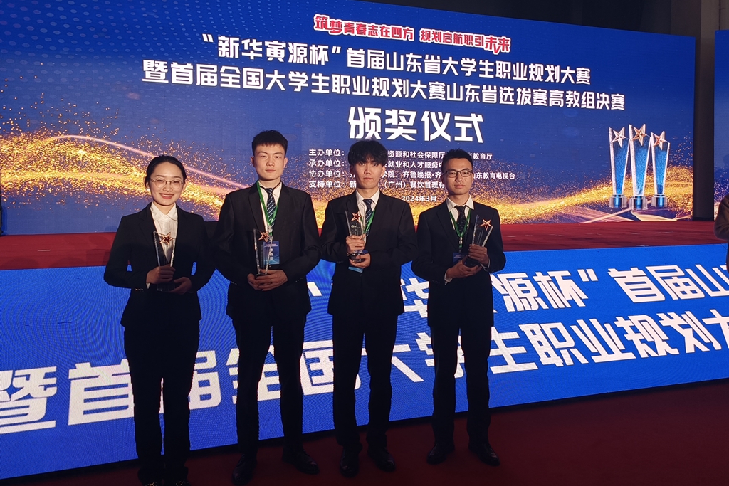 本网讯 近日,由山东省人力资源和社会保障厅、山东省教育厅共同主办山东省大学生职业规划大赛高教组决赛结束。我校推荐参加省级决赛的4名同学取得了4项铜奖。其中,教师教育学院2020级学前教育专业的许敏、机械与自动化学院2020级自动化专业的赵桂彬获得就业赛道铜奖,传媒学院2021级数字媒体技术专业的周振宇、计算机工程学院2021级软件工程专业的孙浩获得成长赛道铜奖。