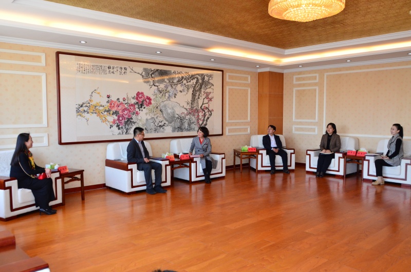 本网讯 4月12日下午,英国齐鲁文商会执行会长宋理鹏、英国赫特福德大学副院长杜祥平来校访问。学校党委书记徐梅会见客人。