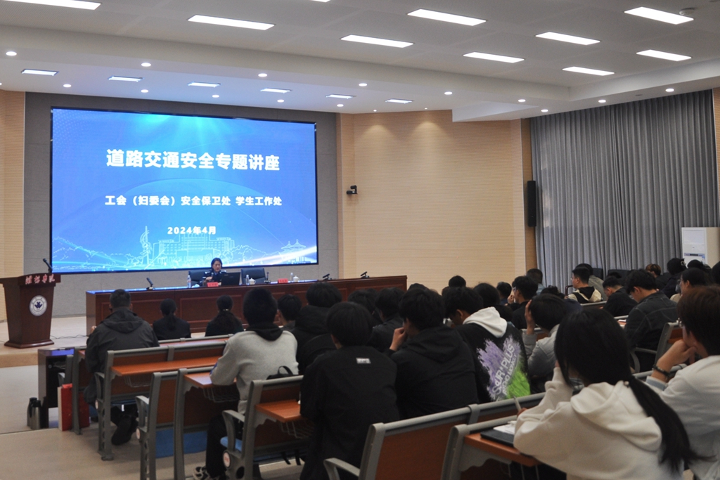 本网讯 4月10日下午,学校邀请市公安局交警支队专家来校举办道路交通安全专题讲座。工会、安全保卫处、学生工作处相关同志以及各学院师生代表参加会议。