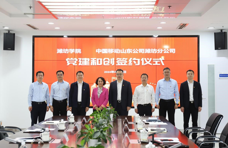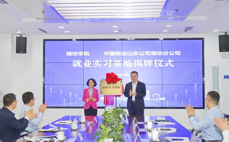 本网讯 4月22日,学校与潍坊移动公司举行“党建和创”签约暨“就业实习基地”揭牌仪式。校党委书记徐梅,党委委员、副校长任立春,党委委员、组织部部长赵加强,潍坊移动公司党委书记、总经理黄麟,党委委员、副总经理李广、刘宁出席仪式。
