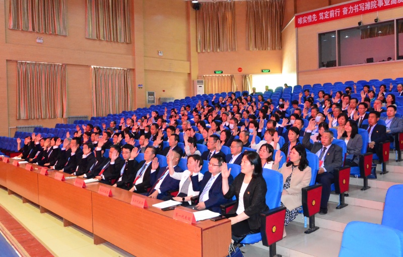 来逢波作题为《唯实惟先 笃定前行 奋力书写潍院事业高质量发展新篇章》的工作报告。报告从三大方面系统总结了六届二次“双代会”以来学校各项事业发展取得的成绩,同时,客观分析了发展形势和存在问题,部署今后一年学校工作。报告指出,全校上下必须坚持以习近平新时代中国特色社会主义思想为指导,深入学习宣传贯彻党的二十大精神,准确把握教育强国强省建设的战略定位,按照学校党委确定的“一三七一一”工作思路,深入实施“改革创新突破年”“管理质效提升年”“能力作风建设年”三大行动,奋力书写潍院事业高质量发展新篇章,加快建设国内一流应用型大学。报告明确,今年学校要聚焦党建和全面从严治党,坚持政治建设领航定向、创新理论凝心铸魂、大抓基层强基固本、党要管党从严治党;聚焦高素质应用型人才培养,强化涵养润心培育新人、教育教学改革创新、教学质量监控保障、就业创业指导服务;聚焦学科建设和科技创新,加快硕士学位点培育建设、构建高水平学科体系、推进平台与项目建设、科技成果产出与转化;聚焦汇聚一流人才师资,着力引培高层次人才、培育高水平师资、激发教职工活力;聚焦现代大学制度建设,推进校院两级管理改革、内部治理提质增效、民主治校凝心聚力;聚焦扩大开放办学,深化国际交流合作、校地融合发展、校际同频共振;聚焦综合保障体系建设,加大办学资源配置、智慧校园建设、财务支撑保障、后勤综合服务、安全隐患纠治等力度,推动学校事业高质量跨越式发展。