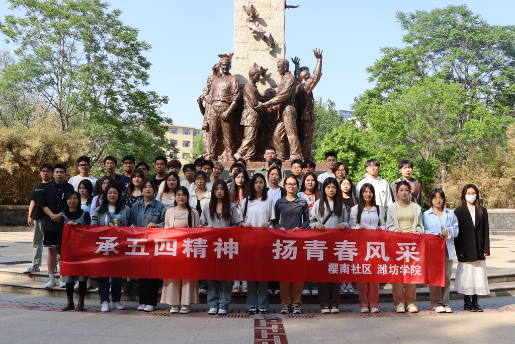 本网讯 为弘扬五四精神,引导青年学子深入了解地方革命历史,厚植爱国情怀,筑牢理想信念,在五四青年节来临之际,4月25日,学校学生工作处联合樱南社区,组织学生干部代表到乐道院潍县集中营博物馆开展以“传承五四精神,激扬青春风采”为主题的五四青年节红色主题教育实践活动。