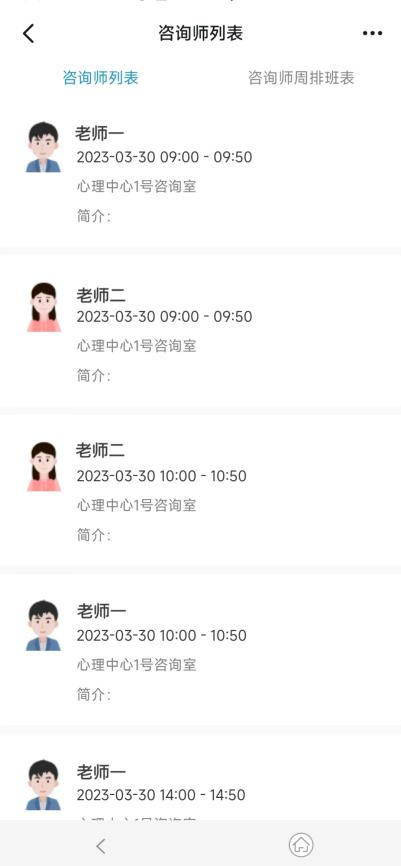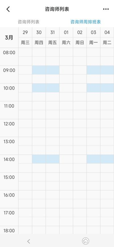 4. 查看咨询师周排班表,选择合适的心理咨询时间