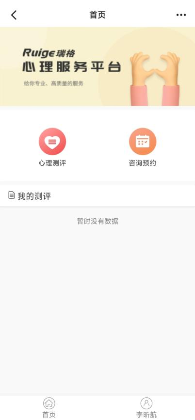 2. 点击咨询预约,进入预约页面,也可以自己进行心理测评(这个要在心理测评时启动哦)。