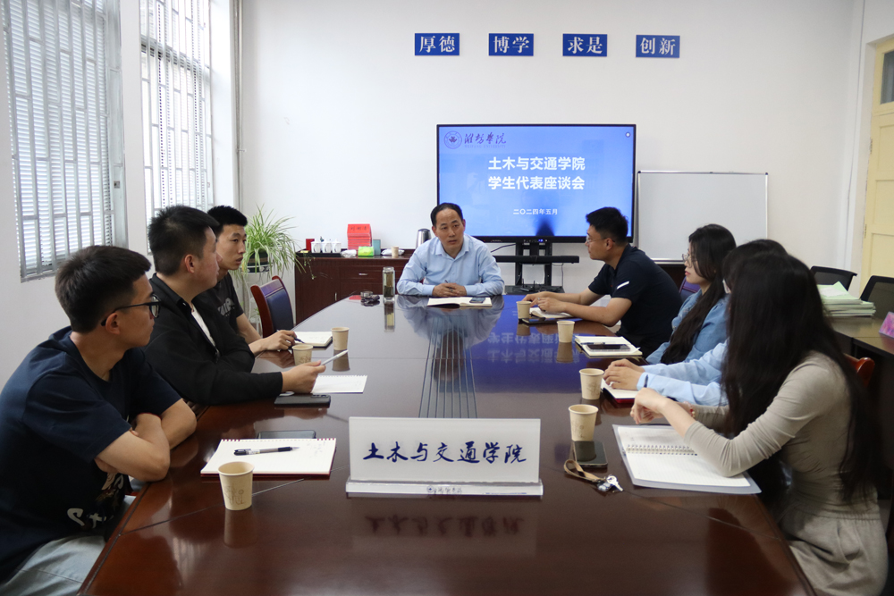 本网讯 为深入了解近期学生的思想状况和就业困惑,进一步增进师生间的相互了解和情感交流,增强学生的认同感和归属感,5月10日下午,土木与交通学院召开学生代表座谈会,与学生面对面进行交流座谈,听取意见建议。该院党委书记刘湖清出席座谈会,团委副书记马俊原主持会议。