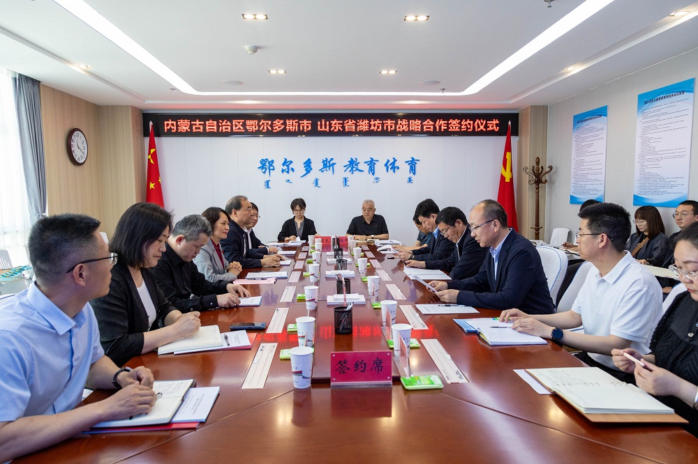 徐梅向鄂尔多斯市教育体育局对学校的充分信任和大力支持,以及潍坊市教育局长期以来给予学校的关心和帮助,表示衷心感谢。她表示,构建覆盖城乡的家庭教育指导服务体系是实现国家治理体系与治理能力现代化的重要战略内容,学校将充分发挥教育、人才、科技、文化等方面优势,结合当地实际需求,全力支持鄂尔多斯市教育事业发展,推动鄂尔多斯市教育高质量发展,努力实现合作共赢。