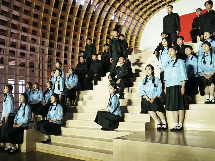本网讯 5月14日,我校音乐与舞蹈学院师生在潍坊市1532产业园上演沉浸式原创音乐党课《卅一年华之歌》。