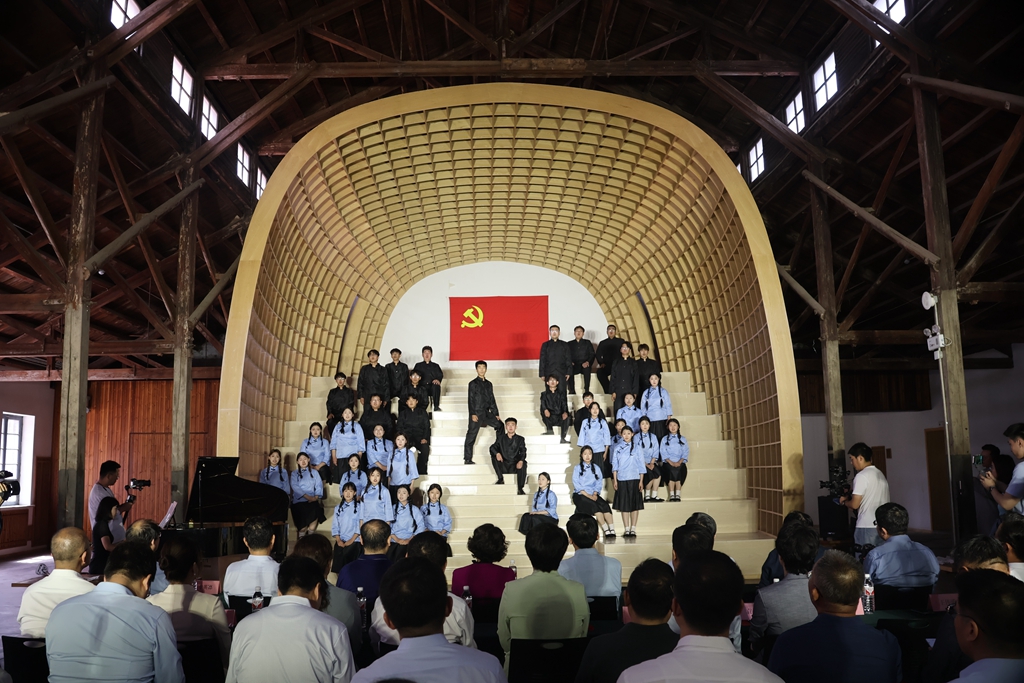 舞台剧《卅一年华之歌》从音乐创作到剧目编导再到演员,全部任务均由音乐与舞蹈学院师生承担。该剧是根据中共一大、二大代表,无产阶级革命家,中国共产党创始人之一邓恩铭的诗集改编而成的爱国主义音乐党课,在邓恩铭同志99年前工作过的地方,通过沉浸式“音乐演唱+党课”的形式,展现了邓恩铭在荔波公立两等小学堂读书、离乡赴山东济南求学、在山东积极开展学生运动、出席中共一大、不幸入狱并英勇就义等经历,反映了邓恩铭在不同时期的成长及革命历程。以喜闻乐见的方式,开展了有声有色有情的学习教育活动,在实践中激发了师生的情感共鸣,增强了对党的理想信念和精神内涵的理解。