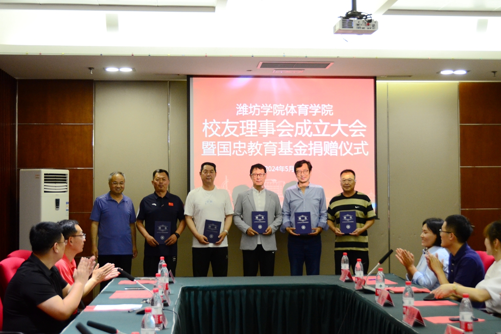 本网讯 5月17日,我校体育学院校友理事会成立大会暨国忠教育基金捐赠仪式在体育馆会议室举行。学校党委书记徐梅出席并讲话,“青岛一念慈善基金会”奖助学金的设立者,我校1981级校友,山东力威集团公司创始人、法人刘国忠先生出席会议。党委委员、副校长李英德主持会议。