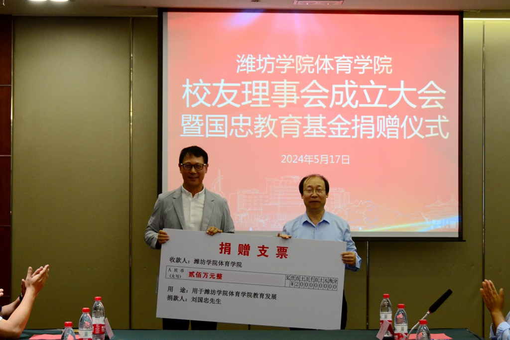 捐赠仪式上,刘国忠先生向学校体育学院捐资200万元,设立“国忠教育基金”。李英德为刘国忠颁发了捐赠证书。