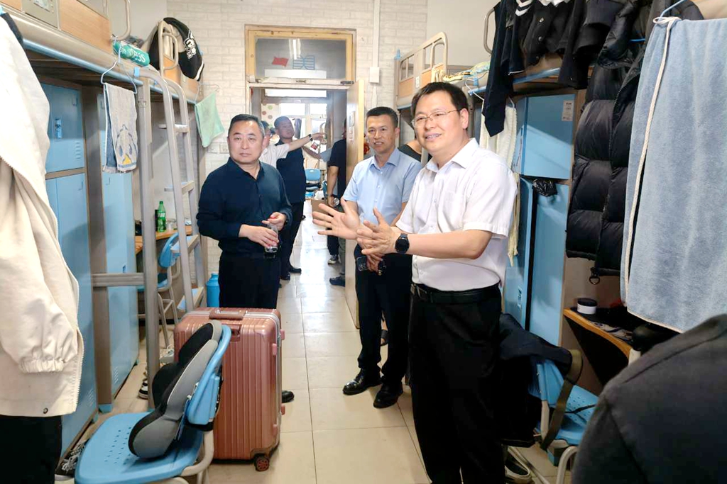 任立春实地查看了学生宿舍的设施设备、卫生环境和宿舍安全情况,并就学生的住宿生活需求、学业进展、职业发展和在校感受与学生们亲切交谈,鼓励大家以饱满的精神和积极的心态对待学习和生活。对于发现的问题,任立春现场提出具体的改进意见,并要求相关部门及时解决。