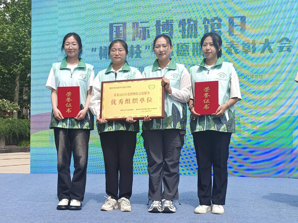 本网讯 5月17日上午,由共青团潍坊市委、市文化和旅游局主办,潍县西方侨民集中营旧址博物馆承办的“5·18国际博物馆日暨‘橄榄枝’志愿服务表彰大会”在乐道院潍县集中营博物馆和平广场举行。我校数学与统计学院荣获“2023年度博物馆志愿服务优秀组织单位”称号。