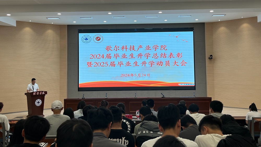 本网讯 为表彰升学先进、树立模范典型,进一步加强学院学风建设,5月24日上午,歌尔科技产业学院举行2024届毕业生升学总结表彰暨2025届毕业生升学动员大会。该院班子成员、教研室主任、全体辅导员、2024届升学“上岸”学生代表及2025届毕业生代表参加会议。会议由该院院长谷善茂主持。