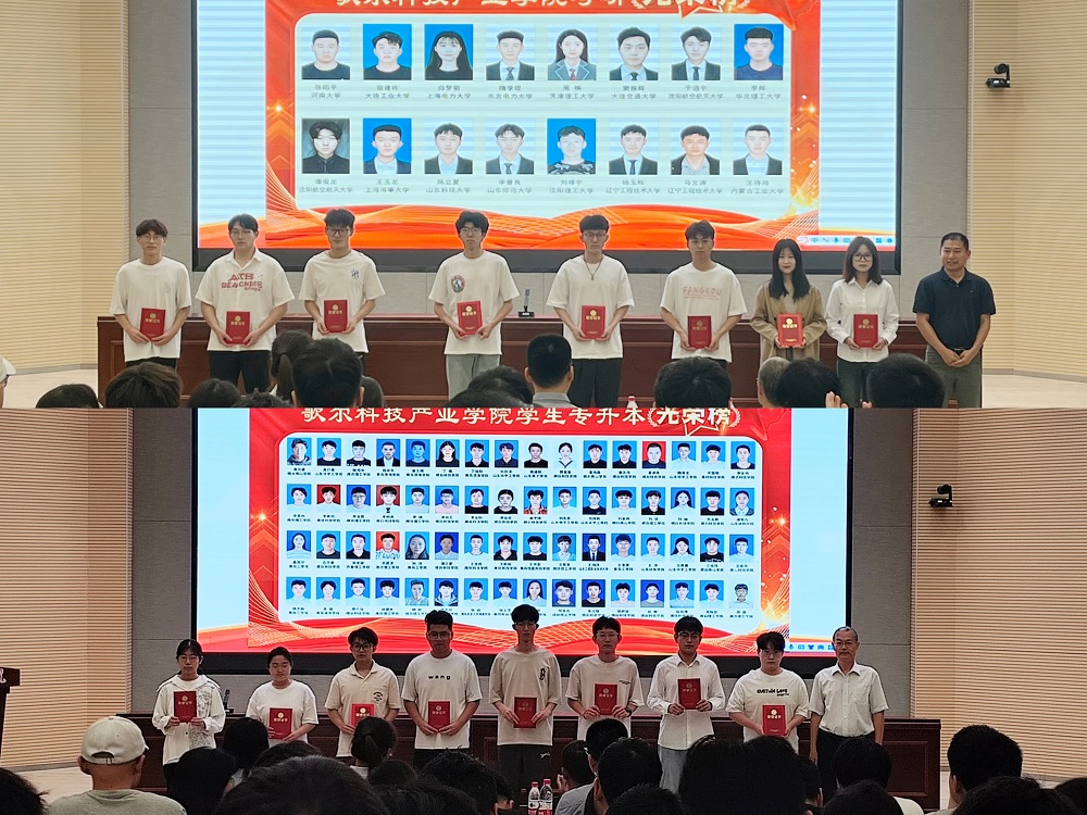 会上,学院党委副书记高连宏宣读2024届毕业生升学表彰决定。他表示,学院2024届毕业生升学录取再创佳绩。其中,16名同学在研究生录取考试中脱颖而出,考研总体录取率达35.6%;112名同学在专升本考试中成功“上岸”,专升本录取率达72.7%,优异成绩的取得离不开同学们的刻苦努力,更离不开学校老师的精心培养。学院党委书记赵鹏俊、副书记高连宏为受表彰同学颁发证书和纪念品。随后,6名升学学生代表依次上台发言,从择校经验、备考方法、时间规划、学习资源、心态调整等方面,为即将面临升学考试的2025届学生解疑答惑,分享学习经验。