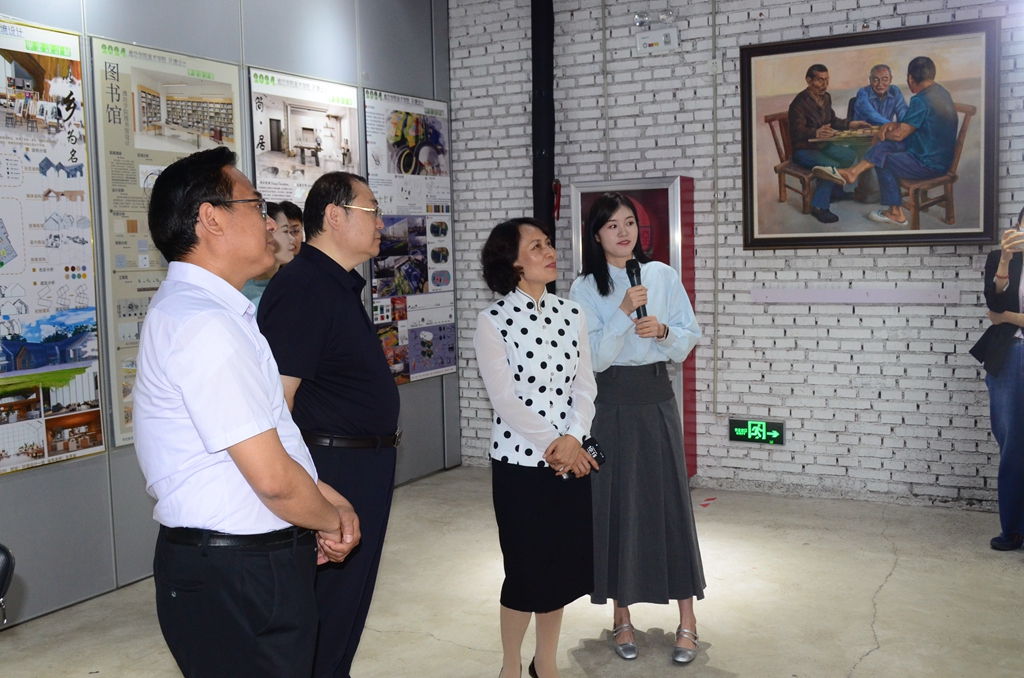 本网讯 5月30日,学校党委书记徐梅,副校长赵卫红、任立春,奎文区委副书记、区长刘建安到潍坊1532文化产业园参观美术学院2024届毕业作品展。