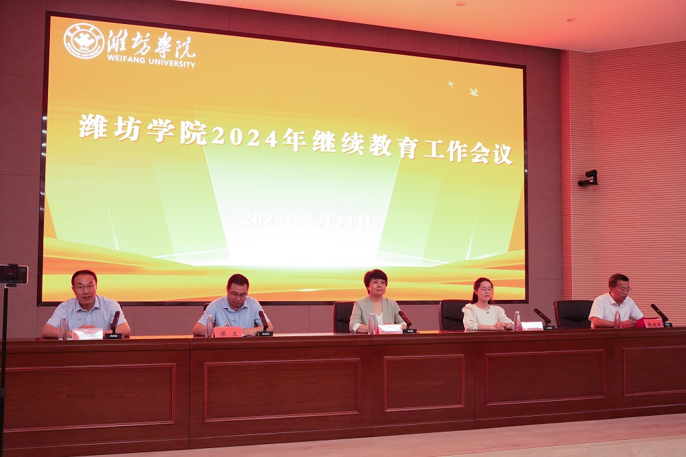 本网讯 5月31日,学校召开2024年继续教育工作会议。学校党委委员、副校长赵卫红,潍坊市教育局党组成员王元元(潍坊学院挂职干部)出席会议。