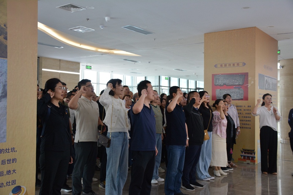 在峡山航天航空基地,全体党员重温入党誓词。随后,在解说员的引导下,集体参观了航天航空科技馆,对我国航天事业的发展和航天英雄崇高的爱国情怀及奉献精神有了更加深刻的认识和了解,更加坚定了作为一名共产党员的理想信念和精神追求。