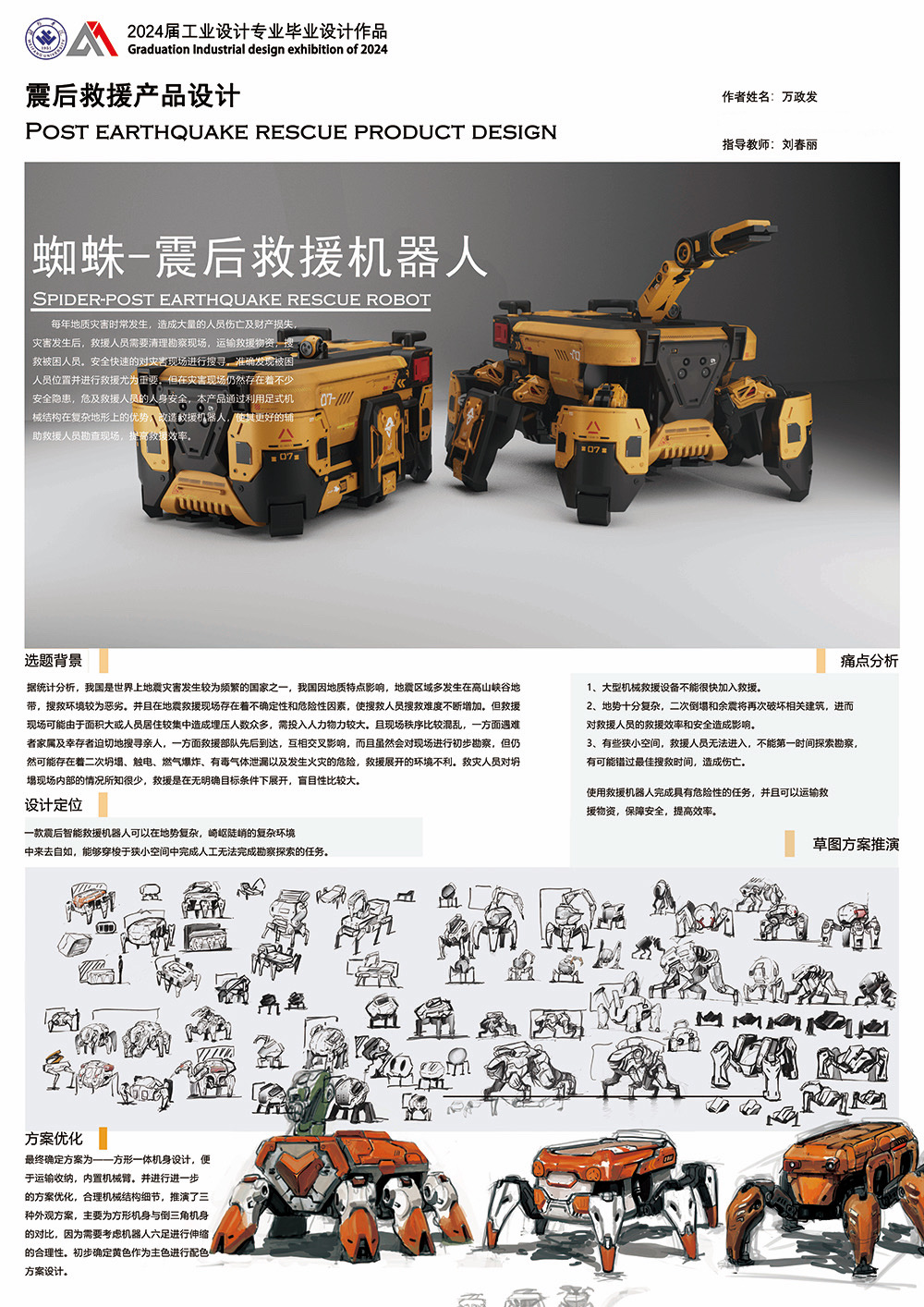 本次工业设计专业2024届毕业设计展于6月3日开展,以“开物·融合”为主题,设计课题涉及工业装备、交通工具、智能产品、文创设计等领域。运用实物样机、展板、视频等多种形式展示了机械与自动化学院工业设计专业2024届45名学生四年来的学习成果。