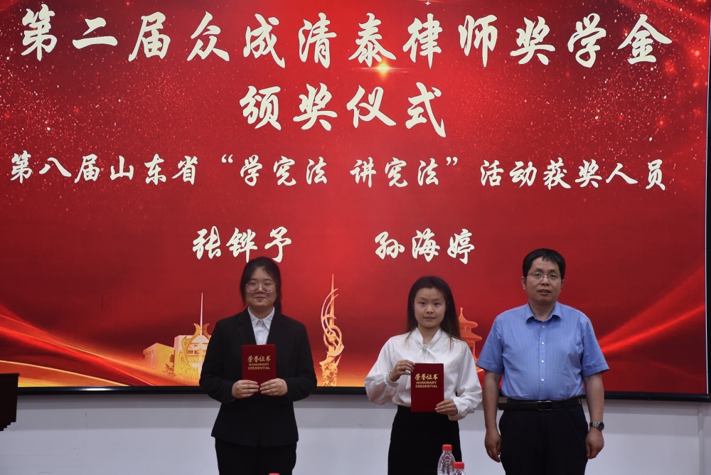 据悉,本次奖学金用于表彰过去两年在“众成清泰杯”山东省高等学校模拟法庭比赛和全国学生“学宪法讲宪法”活动山东赛区比赛中取得优异成绩的学生。