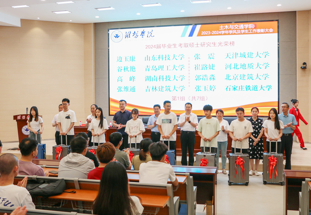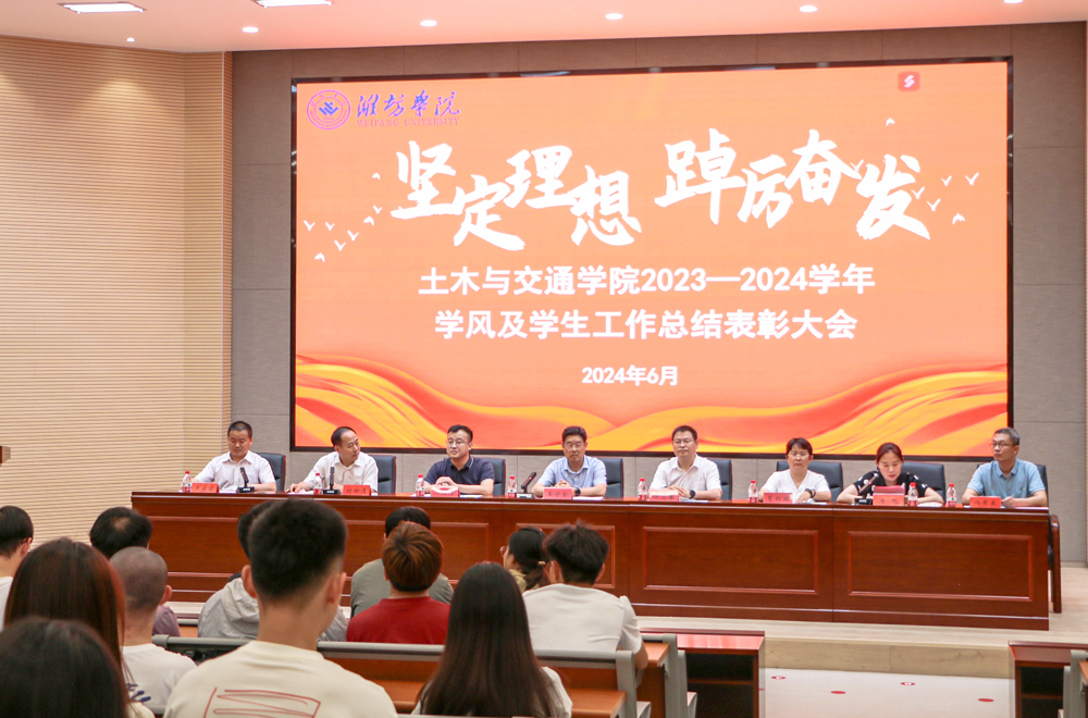 本网讯 为进一步贯彻落实学校第四次党员代表大会工作部署,落实“七四五”全环境育人和校园文化涵养润心工程工作要求,激发师生干事创业的积极性,6月3日,土木与交通学院召开2023—2024学年学风及学生工作总结表彰大会,对学院一年来的学风和学生工作进行总结表彰。学校党委副书记王守全,副校长任立春出席会议。