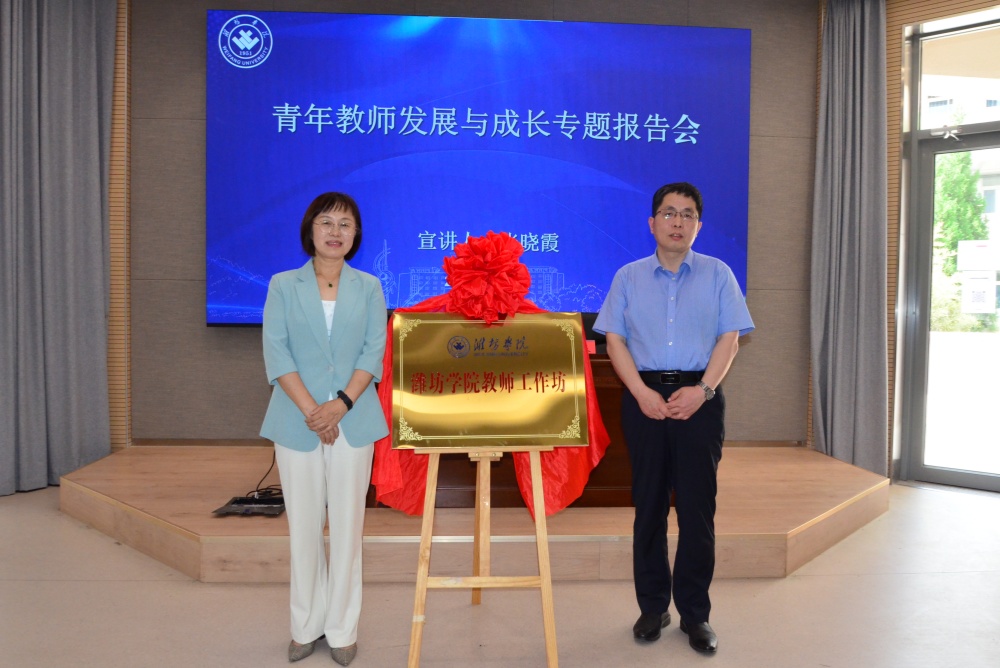会前,苗金春和张晓霞为“潍坊学院教师工作坊”揭牌。